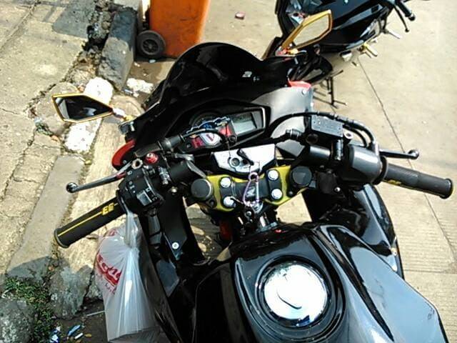 Stang ninja pilihan yg tepat. Suzuki Satria Fu ganti stang punya RZR dan punya Yamaha Byson serta stang Honda Tiger. Tegal Riyan silver variasi.