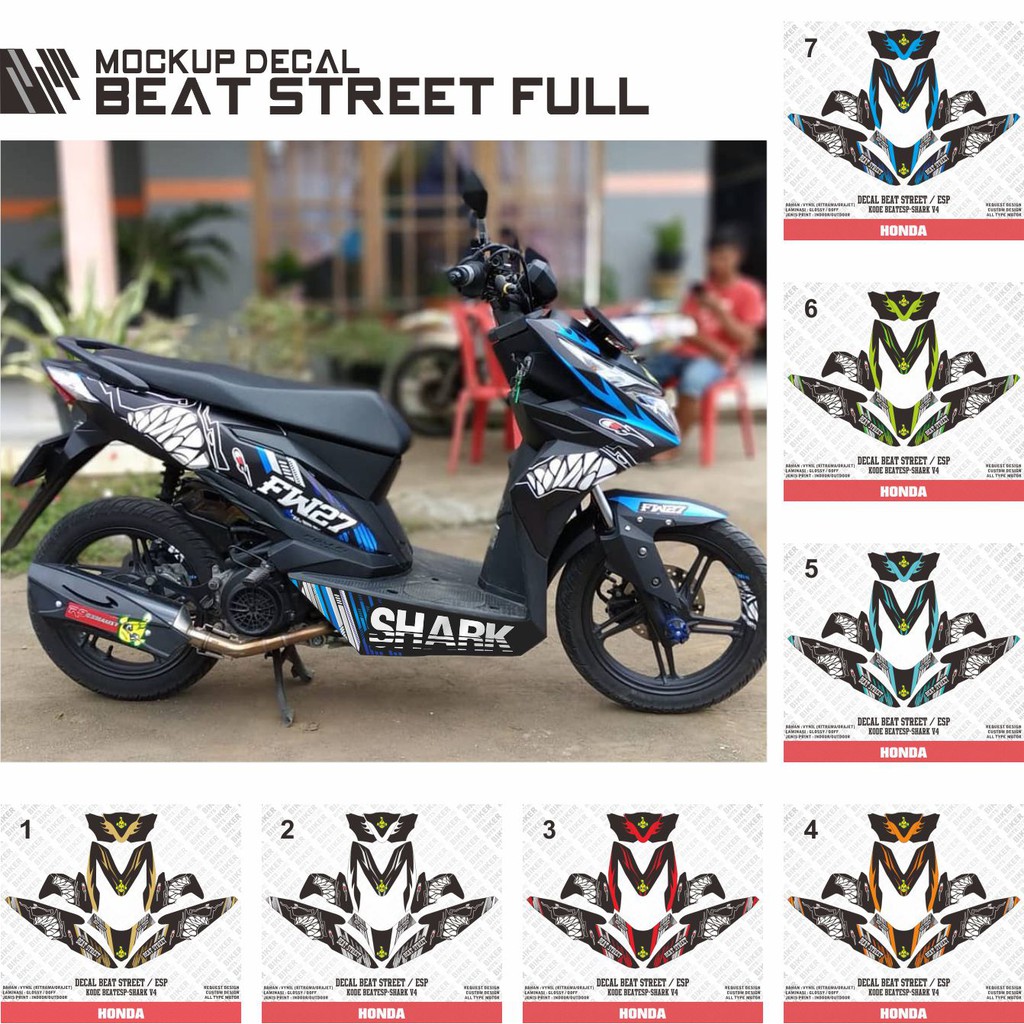 Decal Stiker Motor Honda Beat Esp Beat Street Shark Hitam Gigi Hiu Shopee Indonesia